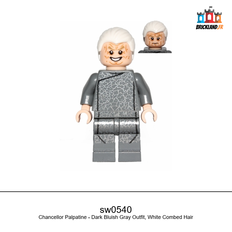 Figurine Star Wars Chancellor Palpatine – Dark Bluish Gray Outfit, White Combed Hair, réf. sw0540